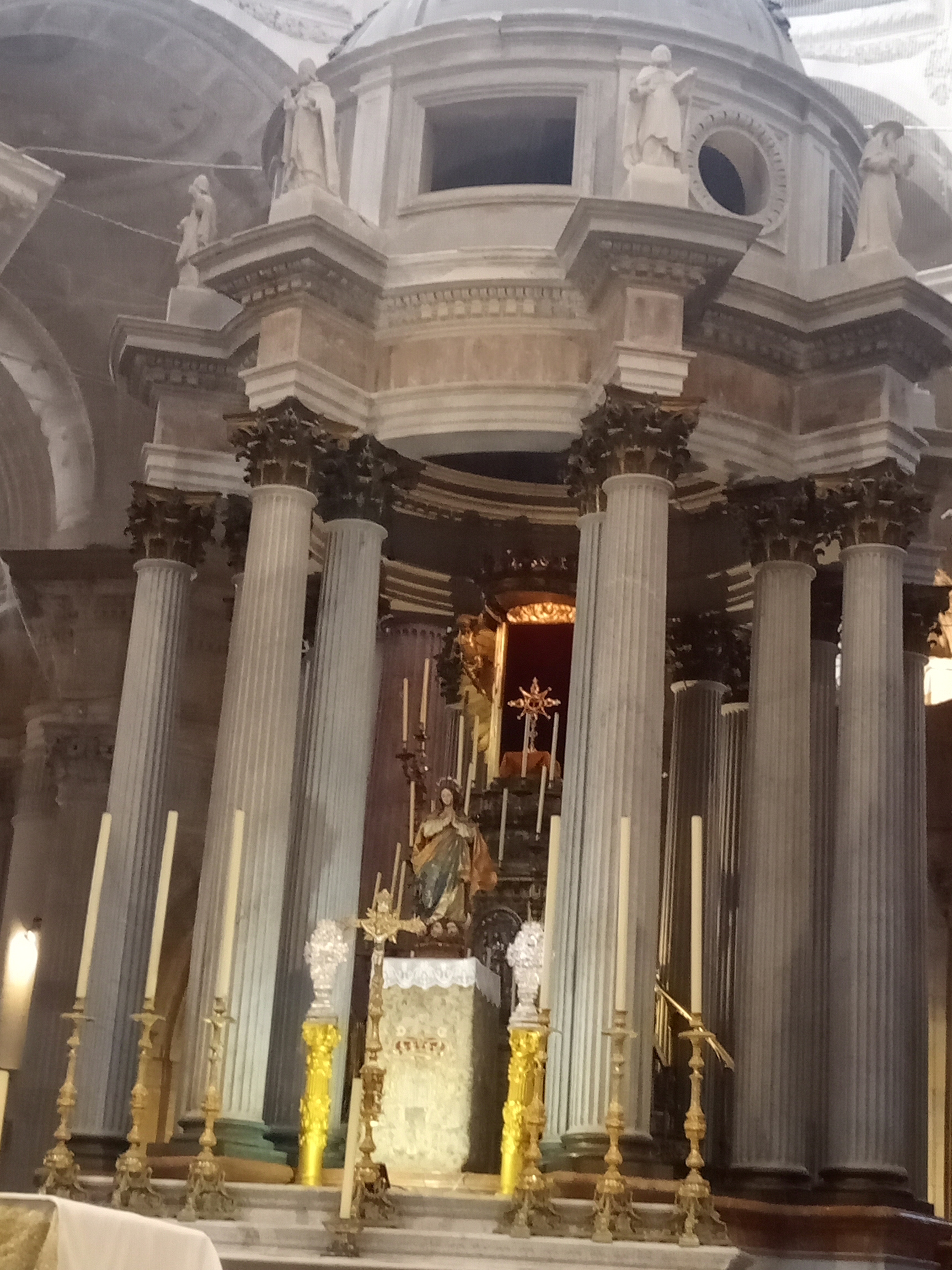 No rush this morning, it's just a 30 minute walk to Cadiz central, on the face of it Cadiz, appeared to be a town with little to fill or time, however we were pleasantly surprised. First port of call was a cafe, to take on liquid refreshment. The cafe was in the Square at the front of the Cathedral, which was going to be our first destination for the day. It was clearly in the middle of a major restoration project going off the scaffolding outside, and the netting stopping you being hit by any falling debris from the ceiling inside, but it still looked splendid even with the work being done. The cost was €7 and included a walk around the cathedral itself, entry to the bell tower and a little museum around the back, so not bad value.